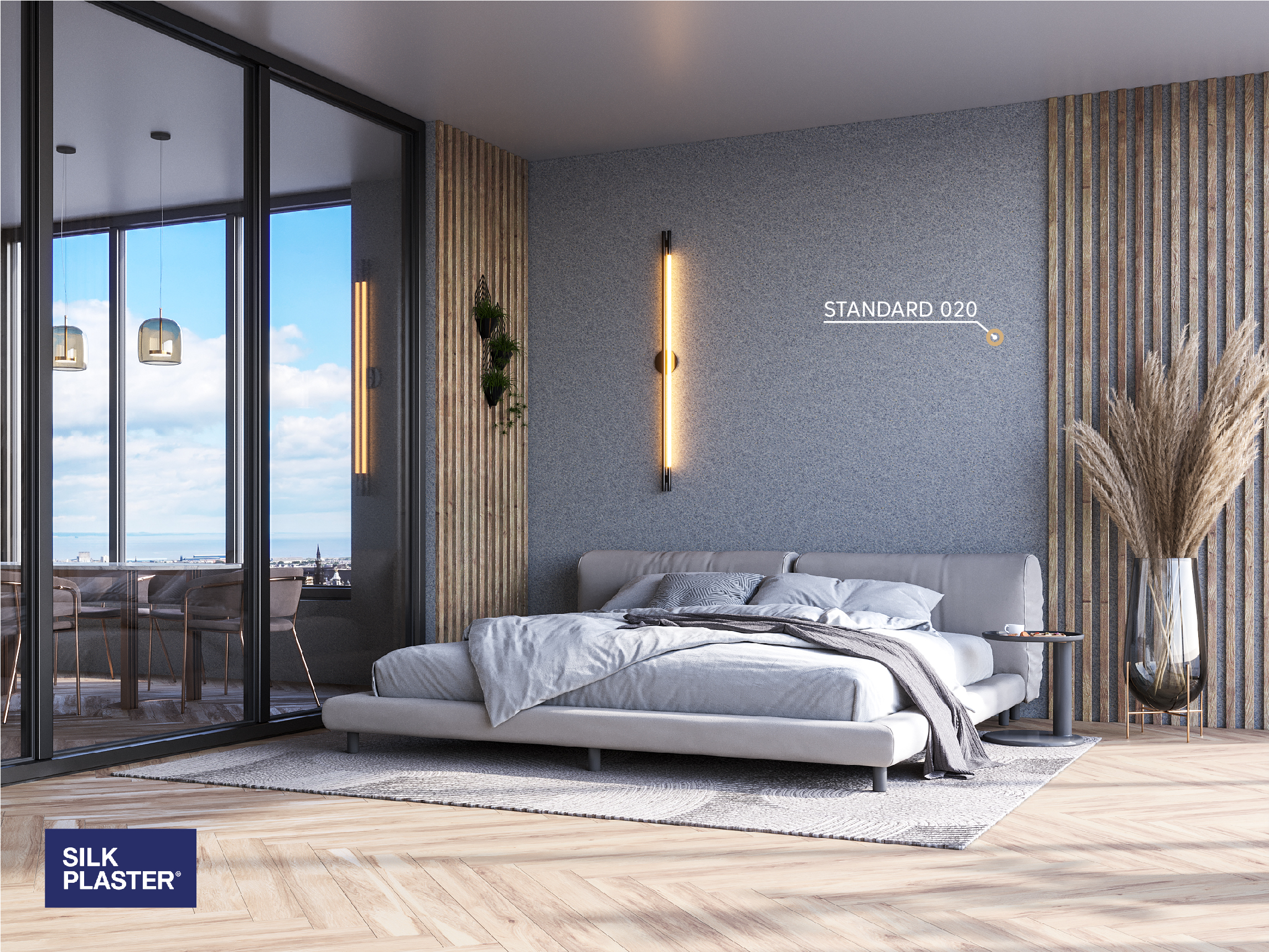 טיח משי (Silk Plaster) לחיפוי קירות פנים. חומר אקולוגי מרכיבים ממוחזרים המעניק תחושת בד, בידוד אקוסטי וספיגת רעשים. פתרון היפואלרגני המשלב טקסטורה רכה עם עמידות ובידוד תרמי.